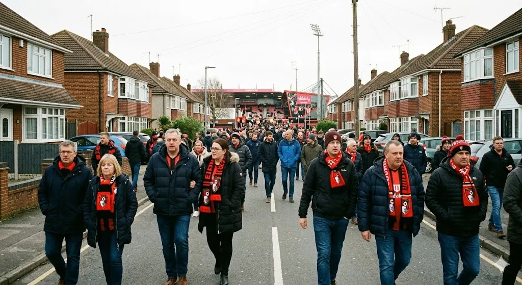 No stadiums are listed for Bournemouth yet; venue listings appear as mapping expands.