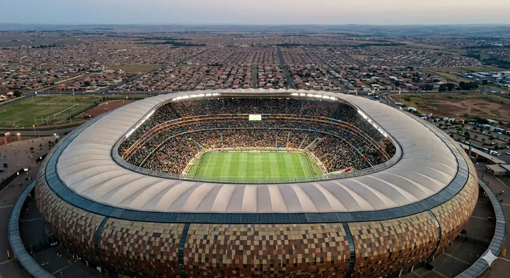 No stadiums are listed for Johannesburg yet; venue listings appear as mapping expands.